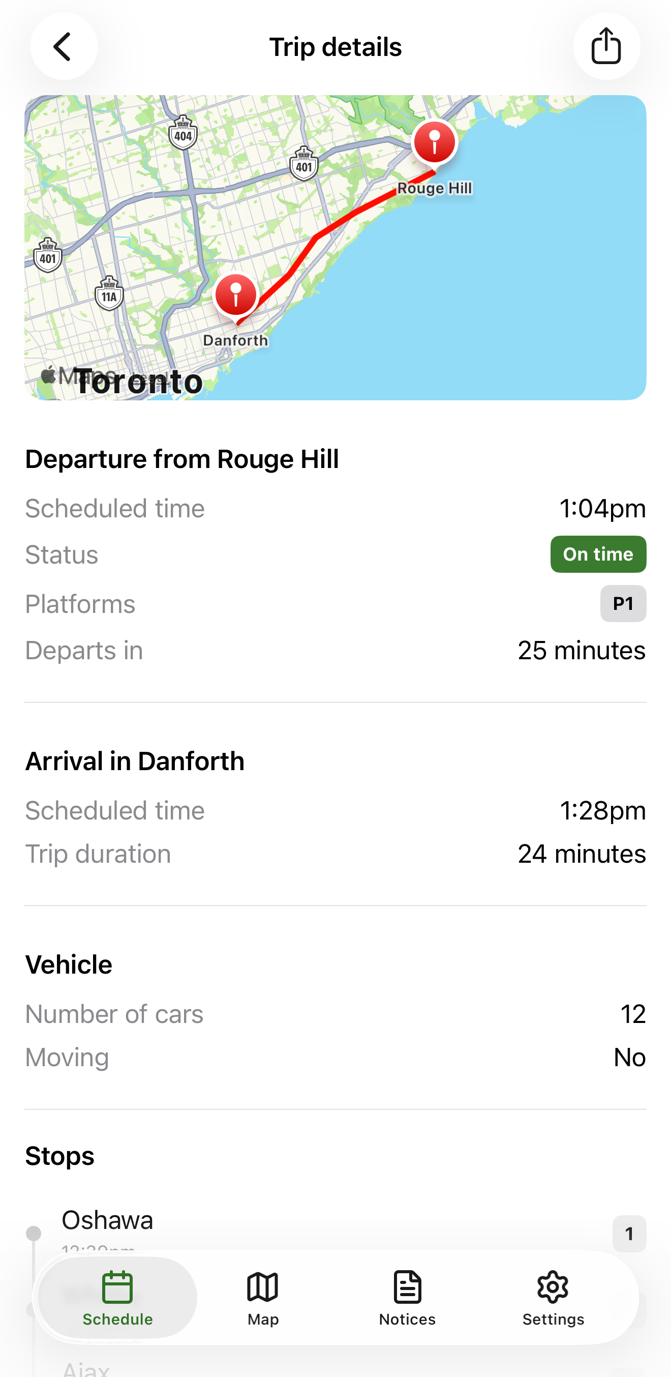 Tap on any trip in your schedule and you’ll see the new trip details screen. It’s a full-screen view that expands on every detail of the selected trip, including some brand new information: